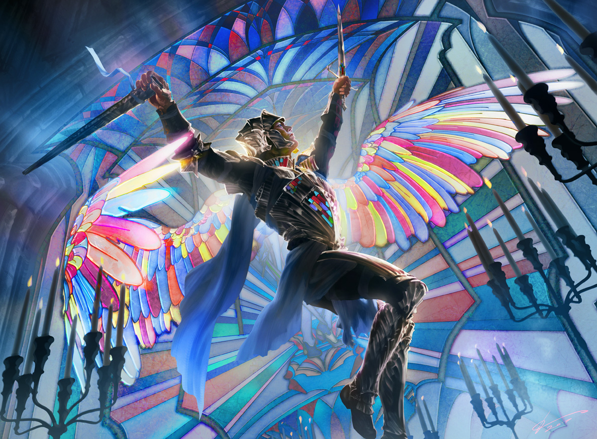 His wings will be bright and colorful, resembling that of stained glass but still soft to the touch. Later on in the game, he may have a halo appear once in a while, but I'm planning for that to be rare-ish.